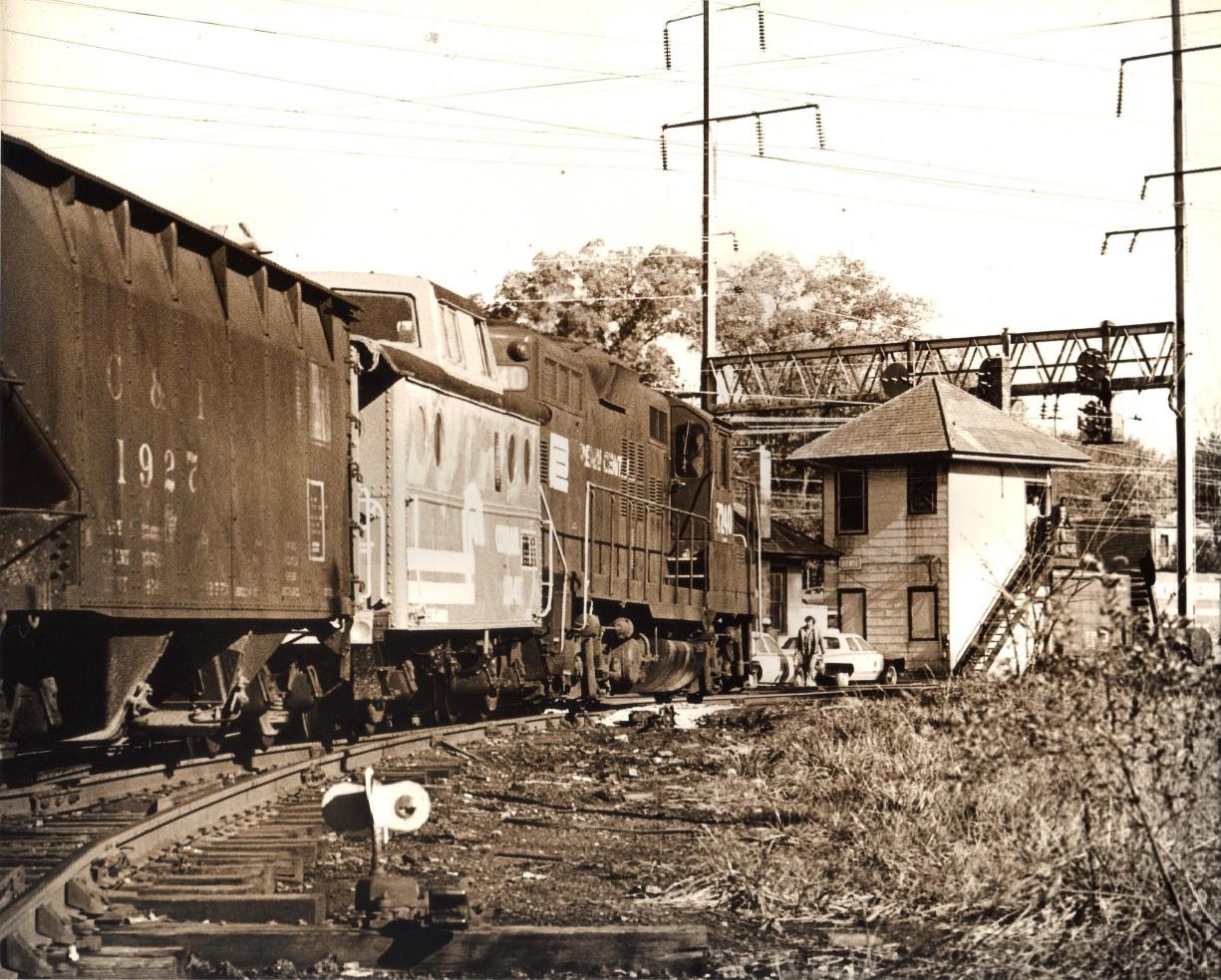 At Bowie, MD, Penn Central diesel locomotive #7240, with Conrail caboose #23147 pointed north on the Pope’s Creek Secondary just short of where it joins the Northeast Corridor. The location is adjacent to the current Bowie Railroad Museum complex. Bowie Tower is visible on the right in this photo at its original trackside location. PCContinue reading “Historic Photo at Bowie Tower”